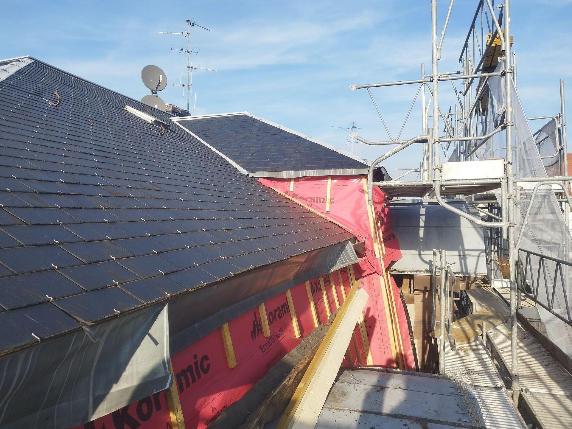 Outre l'objectif de pérennité et d'amélioration énergétique, le bâtiment est rénové dans une logique patrimoniale. La magnifique couverture a été rénovée dans les années 1990 de manière trop simples ; elle retrouve aujourd'hui des prestations anciennes et plus esthétiques : membron traditionnel, crochets d'ardoises prépatinés, démolition d'une cheminée obsolète non patrimoniale.