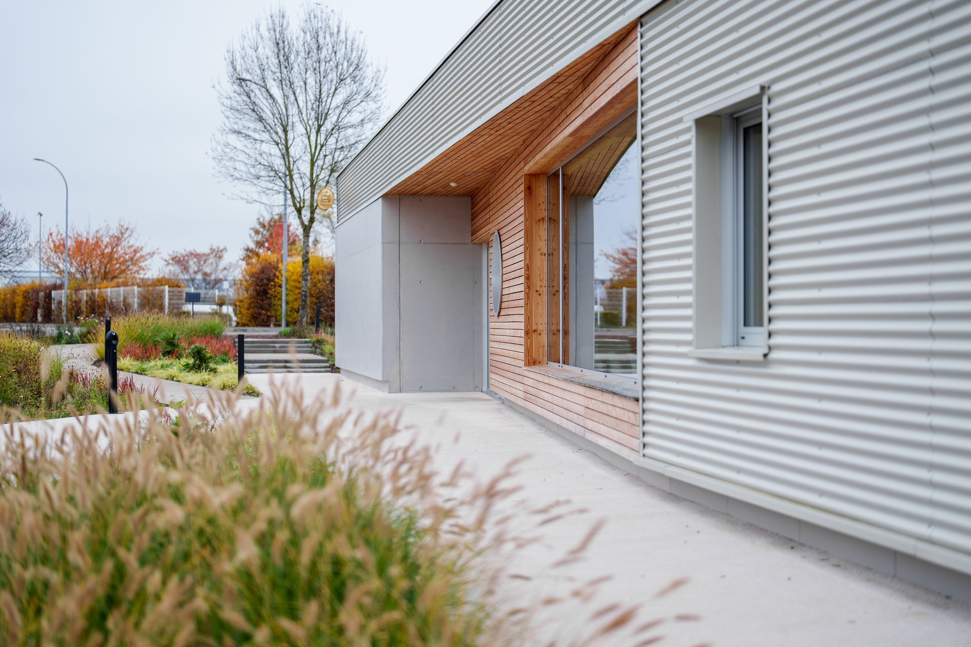 Situé en bordure de la zone d’activités de la commune de Lure, à proximité d'espaces naturels préservés, c'est une architecture sobre et contemporaine.